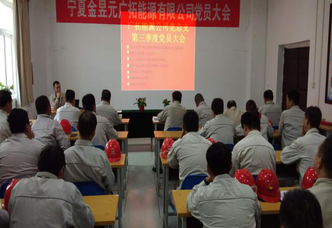 2018年10月16日下午16:30分,寧夏金昱元廣拓能源有限公司黨總支“主題黨日+”活動(dòng)及三季度黨員大會(huì)在化工調(diào)度室召開,公司黨總支書記馬建東主持會(huì)議。集團(tuán)公司黨委副書記王立軍及全體黨員、發(fā)展對(duì)象、入黨積極分子共計(jì)60余人參加會(huì)議。