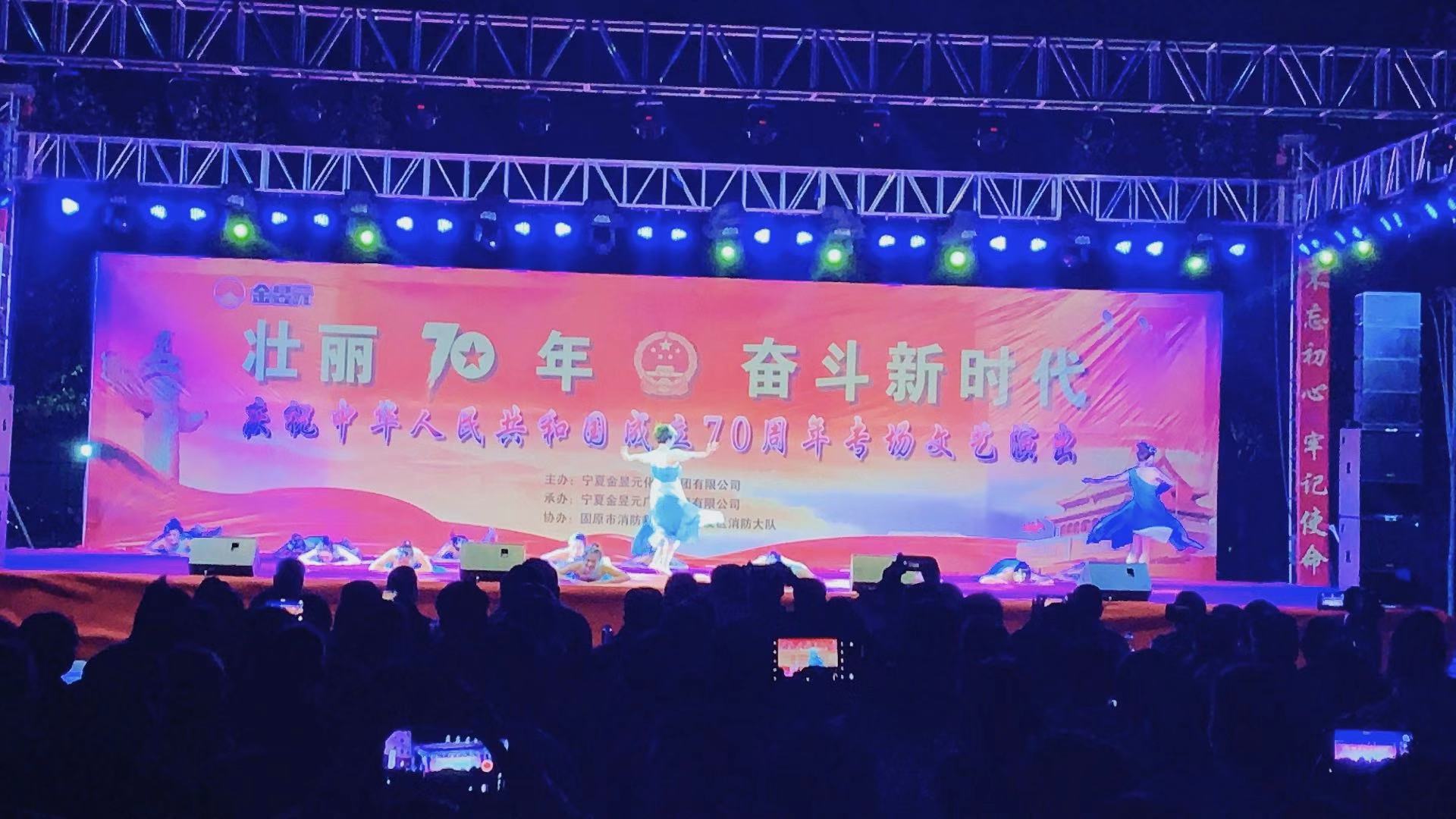 為慶祝新中國成立70周年,寧夏金昱元化工集團攜手固原市開發區消防大隊舉辦了以“壯麗70年,奮斗新時代”為主題的文藝匯演晚會,2019年9月26日晚,文藝匯演來到固原片區,固原經濟開發區管委會,固原市工信局,固原市消防救援支隊開發區消防大隊,集團公司、固原片區相關領導以及各子公司職工代表,外協單位共計400余人觀看了本次文藝匯演活動。