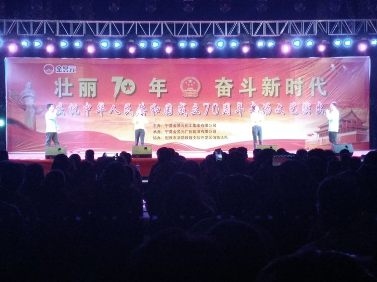 在新中國成立70周年來臨之際,寧夏金昱元化工集團舉辦此次文藝匯演活動,不僅為廣大群眾奉獻了一場精彩的視聽盛宴,表達了各族人民對黨和祖國的熱愛和美好祝愿,更激發了大家愛國愛黨的熱情,增強了各級群眾的凝聚力、向心力。我們滿懷赤子之心,向祖國獻禮,用歌聲祝福祖國繁榮昌盛,祝福明天的中國更加美好!