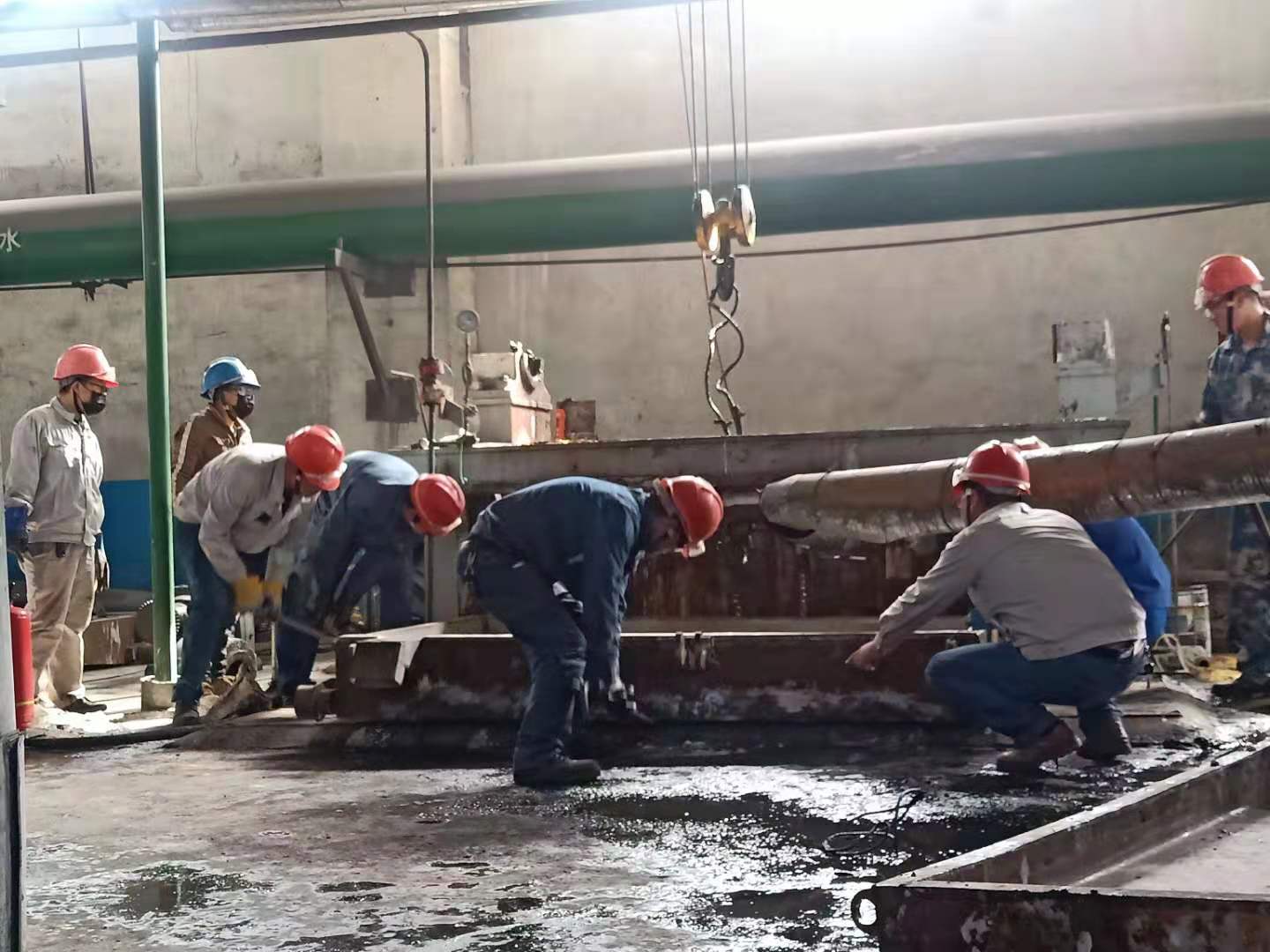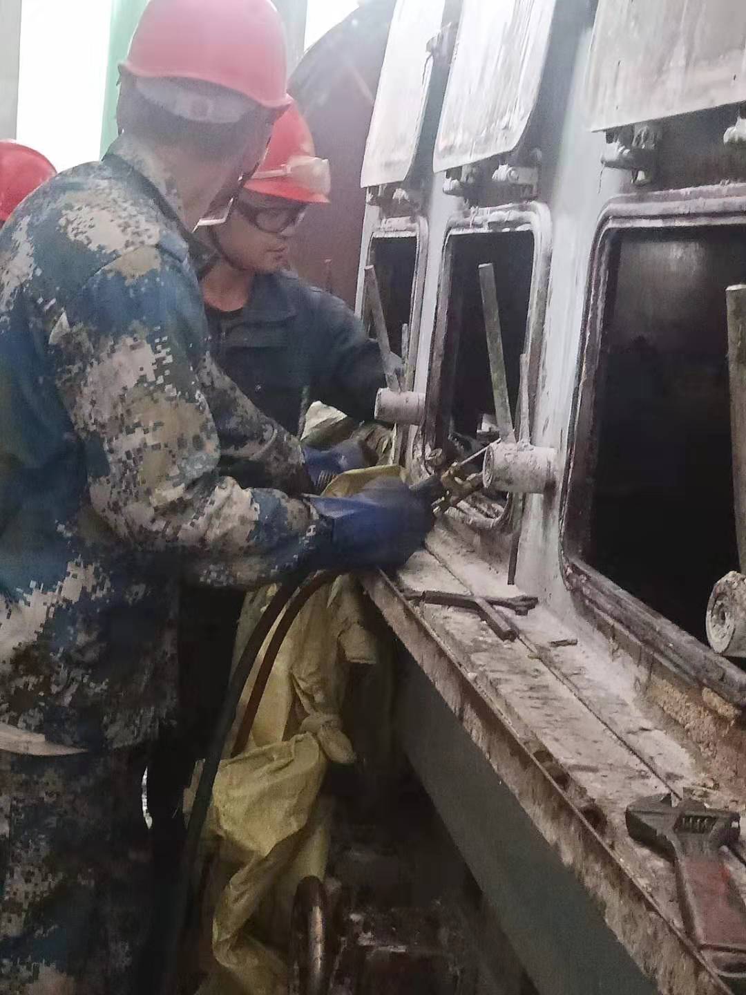 清晨,我看到兢兢業(yè)業(yè)的管理人員和朝氣蓬勃的年輕同事,他們“武裝上陣”頭戴安全帽,手帶防護手套。拿著各類方案和各類工具,快速地奔向各個檢修點。我看到他們忙碌的身影和為了完成檢修任務而焦灼的神情,大大小小的設備里三人一伙,兩人一組,有更換閥門的,有更換閥欄的,每個人手上、身上都沾滿了油污,他們沒有抱怨,只是默默地付出著。