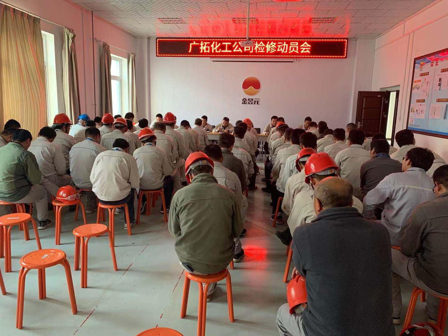 2019年10月22日至25日,廣拓化工公司為期四天的檢修已拉開序幕,21日下午公司組織召開技術員及以上管理人員檢修前的動員大會。