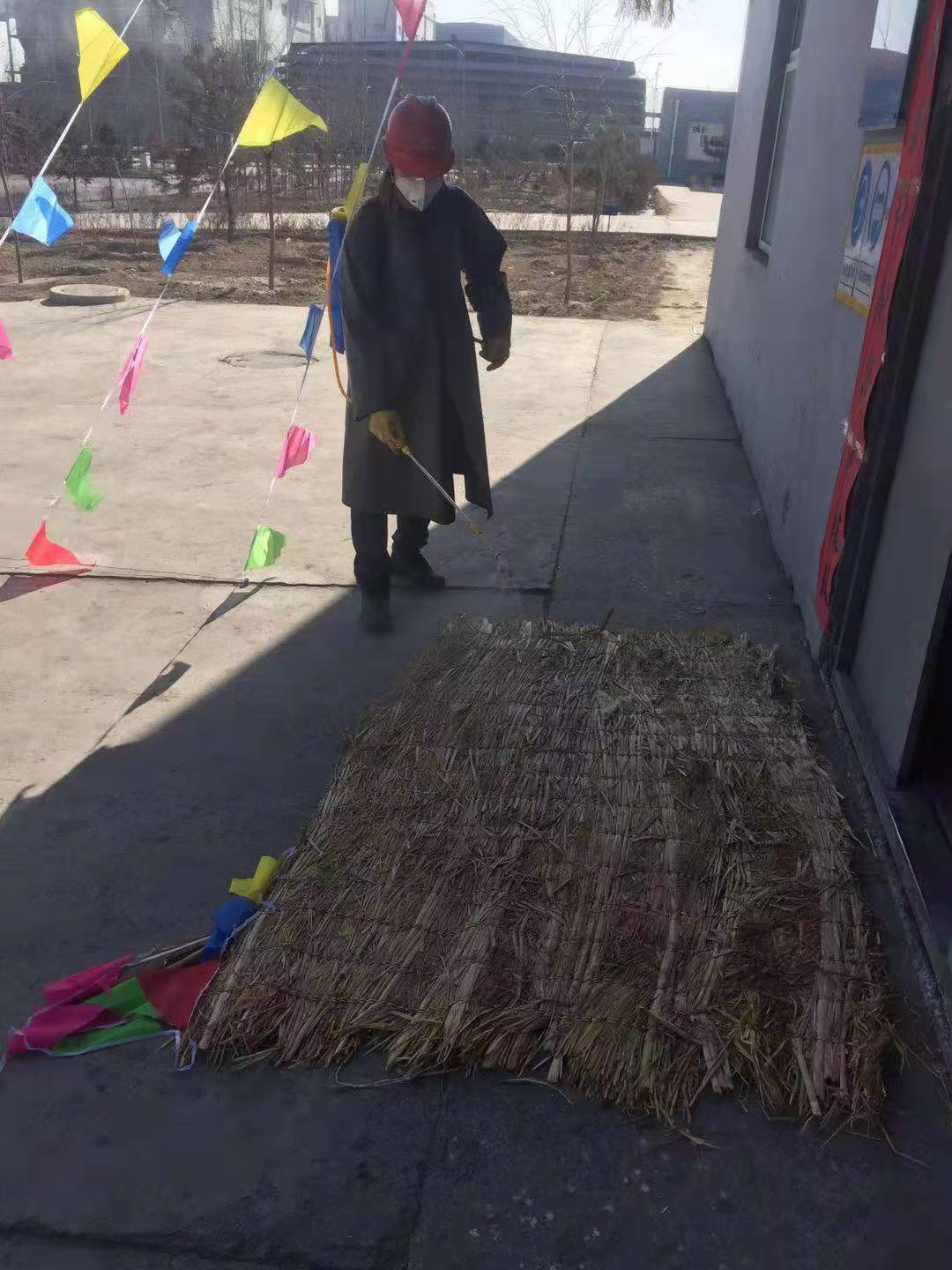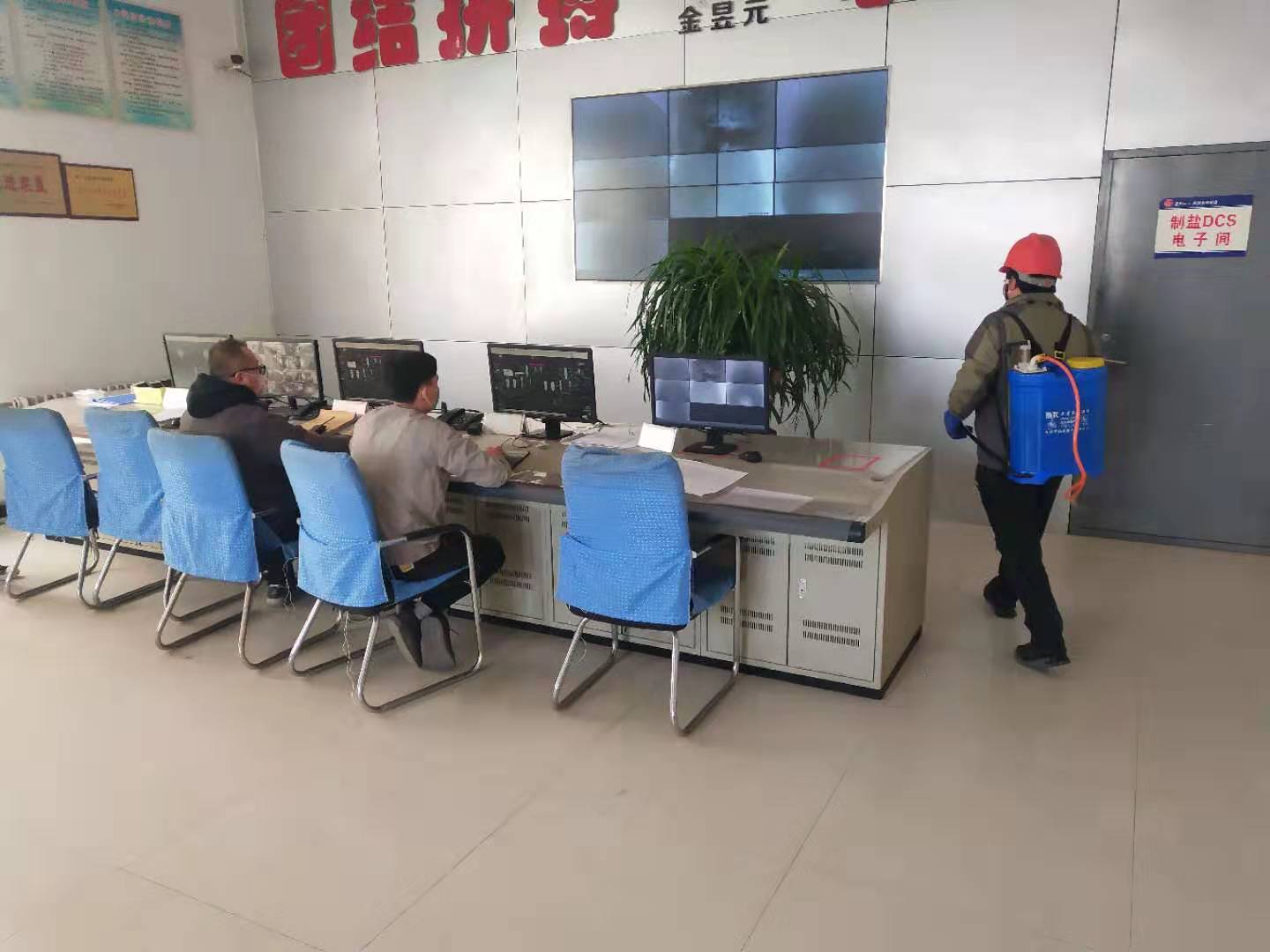 8、各裝置、科每日分別于8-9時、14-15時、20-21時對辦公區域、主控室、值班室、操作場所、生產廠房等區域進行消毒工作,并做好相關記錄。熱力裝置負責對進入煤場路口鋪設草簾或棉質墊子,安排人員每隔二小時向上噴灑消毒水,鹽硝裝置在小廣場護欄間路口鋪設草簾或棉質墊子,安排人員每隔二小時向上噴灑消毒水,對進廠車輛輪胎進行消毒。
