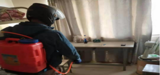 公司安排專人堅持對所屬區域內的辦公室、值班室、操作場所、檢維修作業場所、中控室、職工宿舍等人員密集場所進行消毒一次,對外包勞務公司負責的公司衛生間和勞務人員值班室及宿舍每3小時進行消毒。