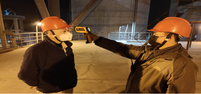 在園區(qū)南門,今日截止下午17時(shí)整,他們檢測(cè)、消毒、登記車輛92輛(其中水泥19車輛,熟料9車輛,2輛氧氣配送車),人員98人信息,體溫均在正常范圍,另外隨行26人體溫均在正常范圍。