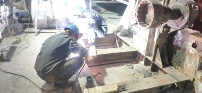 (8)回轉窯輪帶擋圈及墊板補焊加固,檢查大齒圈齒面磨損并對齒面打磨修復(未完成);