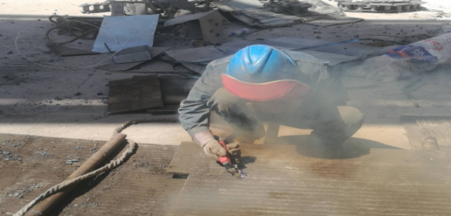 (7)回轉窯輪帶擋圈及墊板補焊加固,檢查大齒圈齒面磨損并對齒面打磨修復(未完成);