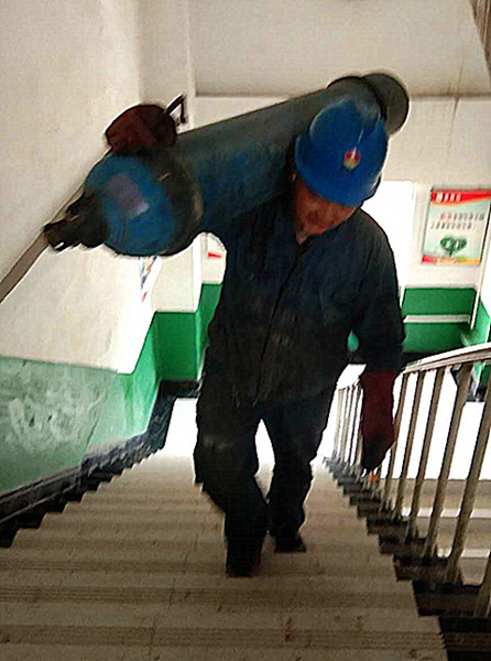 這邊沒有氧氣了,瘦一點的同事扛不動氧氣瓶,維修班的袁文二話不說,一把扛到肩上就走了,他的拼搏與擔當在一層層樓梯上、在他沉重的腳步中無限延伸……再一次延伸出那“團結、拼搏、求實、創新”的優秀品格和文化內涵。
