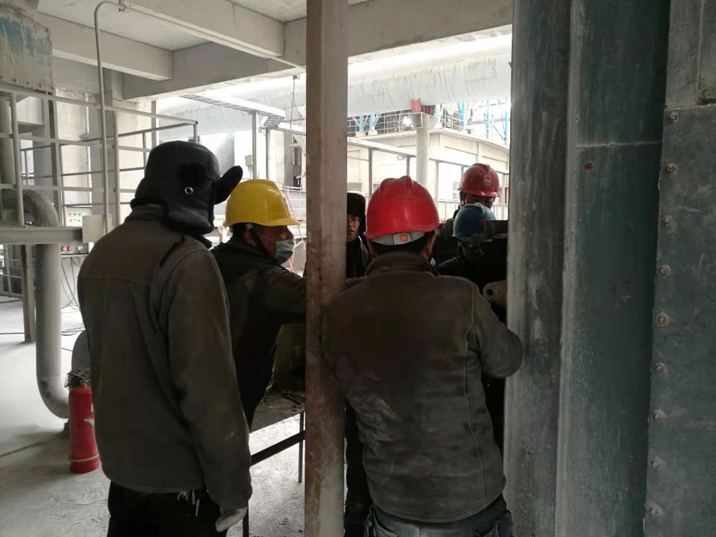檢修作業全程跟蹤,一天一夜檢修下來,有睡在辦公室沒回家的,也有吃飯就在作業現場……比比皆是?偨浝韰羌t衛更是如此,一個作業一個作業現場轉上轉下,從2026提升機作業點到回轉窯主傳減速機,再到篦冷機、煤磨、烘干破、預熱器、2301、2323、2401提升機以及高溫風機、回轉窯窯內及燃燒器檢修現場,指導,建議,一直值守在現場,忙著跟工人們同時收工,一整晚都未歸宿就寢室。工人們,裝置長擔心他的身體,時常提醒讓他回去休息一下,喝口水,而他放心、安慰大家說,“我和大家一樣的心情,早完工,產量就能早生產一點,我們后續生產就能輕松一點,大家加油”。一直以來,他和這個班子成員、工人們一起頂著嚴寒,一直堅守在現場安全履職和協調把控檢修進度,不厭其煩的一次次的詳細交底,直到一項一項設備檢修更換完畢。