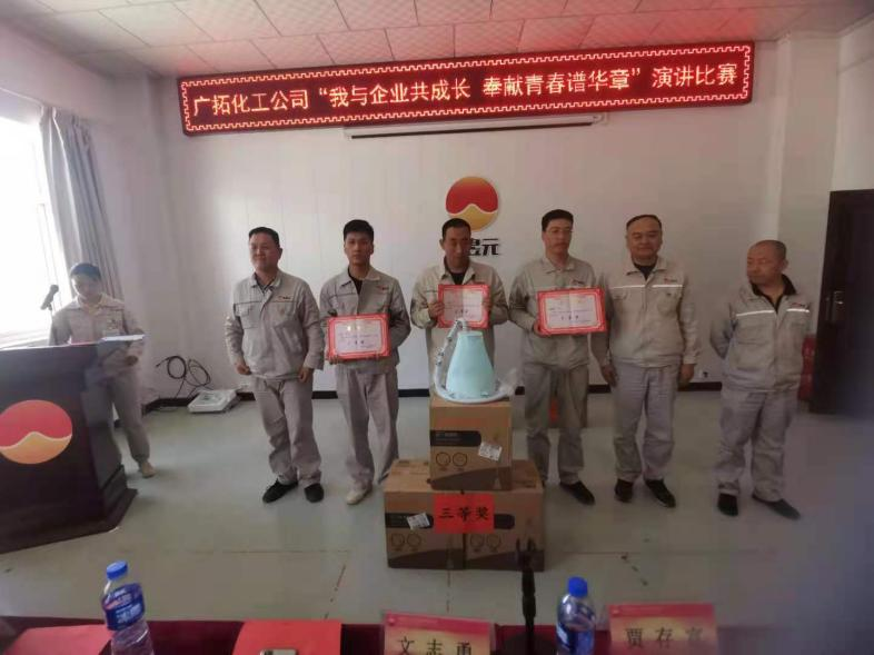 為慶祝中國共產(chǎn)黨成立100周年和金昱元建廠30周年,進(jìn)一步弘揚(yáng)我公司的企業(yè)文化,激發(fā)職工干事創(chuàng)業(yè)、高效跨越發(fā)展的活力,凝聚企業(yè)持續(xù)和諧發(fā)展的合力。2021年5月27日,寧夏金昱元廣拓能源有限公司舉辦了關(guān)于“我與企業(yè)共成長•奉獻(xiàn)青春譜華章”主題演講比賽活動。