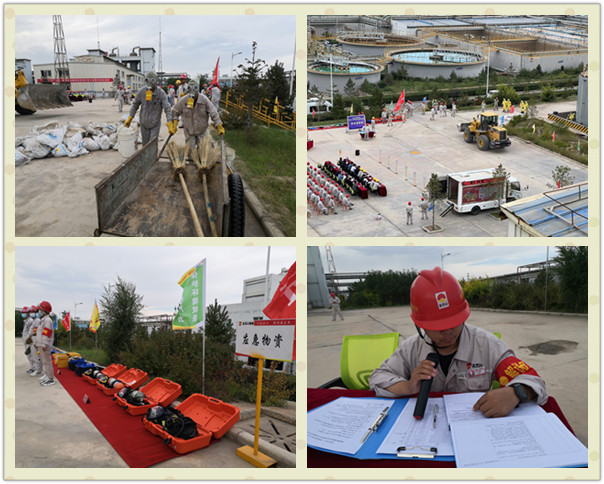 “報(bào)告總指揮,各演練部門(mén)準(zhǔn)備完畢,氯乙烯球罐單體泄漏應(yīng)急演練是否開(kāi)始。”“開(kāi)始!”隨著演練總指揮、片區(qū)副總經(jīng)理、廣拓能源總經(jīng)理賈存富的一聲令下,應(yīng)急演練正式開(kāi)始。”本次演練設(shè)定為一般突發(fā)事件應(yīng)急響應(yīng),演練內(nèi)容是:廣拓能源有限公司廢酸處理稀硫酸罐排污閥泄露,由于稀硫酸泄漏量較大,啟動(dòng)突發(fā)應(yīng)急預(yù)案。主要演練現(xiàn)場(chǎng)警戒、人員撤離、筑壩攔截預(yù)防稀硫酸外溢、危險(xiǎn)廢物收集。