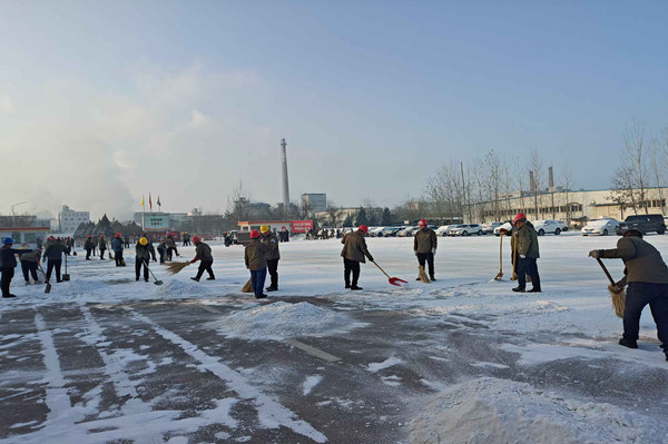 在除雪過程中,領(lǐng)導(dǎo)們始終與員工們并肩作戰(zhàn),他們不僅是指揮者,更是參與者。當(dāng)遇到積雪結(jié)冰難以清理時(shí),領(lǐng)導(dǎo)們與員工們共同商議對(duì)策,現(xiàn)場(chǎng)調(diào)配資源。他們親自上陣,與員工們一起喊著口號(hào),齊心協(xié)力將積雪堆攻克。