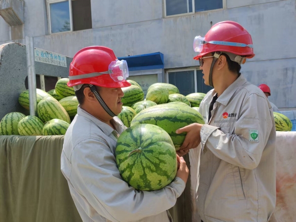 高溫猛如虎,關愛深似海。公司領導把西瓜和飲料等慰問品送到員工手中,將濃濃關愛送到員工心中。公司領導對員工們致以親切的問候,對他們在酷熱的夏天堅守崗位、默默奉獻致以崇高的敬意。員工們對領導的慰問如飲甘泉,信心倍增。