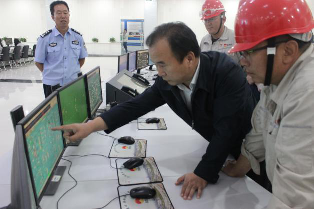 劉市長一行來到化工中控室,詳細詢問工作人員值班、中控臺控制操作、巡檢等情況。集團公司副總裁、總經(jīng)理喬冠榮就公司生產(chǎn)經(jīng)營、安全環(huán)保、隱患排查等方面工作做了詳細匯報,并就劉市長提出的相關(guān)問題一一作了解答。