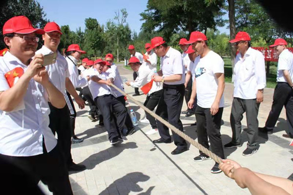 為豐富活動形式,增強黨員的交流互動,放松緊張的工作情緒,活動結合學黨章黨規,組織開展了黨的知識答題接力賽和拔河比賽。拔河比賽中,三個支部選拔精兵強將,循環比賽。經過激烈比拼,資源再生公司黨支部獲得第一名,公司黨委為優勝隊頒發了紀念品。