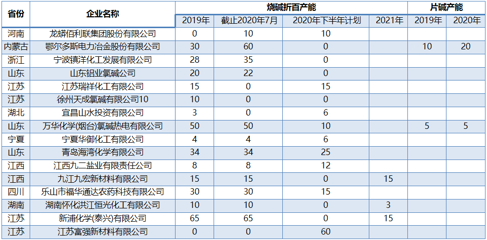 由此可見,2020年全國總產能實現穩步增長,但整體增速相比同期有所下降,受全球公共衛生事件沖擊,燒堿下游需求表現不佳,整體行情不甚樂觀。出于整體需求和供需平衡考量,預計未來產能增速將有放緩表現,具體發展變化還需關注后續全球公共衛生事件處置情況及市場行情實時變化。