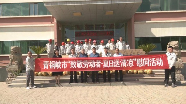 青銅峽市總工會和固原經濟開發區總工會為集團公司送來西瓜、礦泉水、金絲菊、冰糖等防暑物品,表達對企業一線員工關心和厚愛。