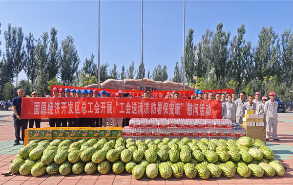 當青銅峽市委、政府和固原經濟開發區總工會的領導為金昱元股份公司奮戰在生產一線的員工們送上西瓜、飲料、茶葉、冰糖等防暑物品的時候,廣大員工對上級政府部門領導的關心和厚愛深表感謝。炎炎夏日,上級政府部門送來的關愛使員工們如沐春風,深受感動。