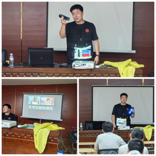 培訓中,胡博老師向員工們介紹了火災類型:包括固體火災、液體火災、氣體火災、電器火災、金屬火災、烹飪火災等六種火災,并指出火災發生后應采取的正確滅火方法。同時介紹了不同消防工具,尤其對微粒子滅火器、水基滅火器、消防應急手電、滅火毯等用途及使用方法進行詳細講解,使大家對滅火工具及滅火方法有了深層次的了解。
