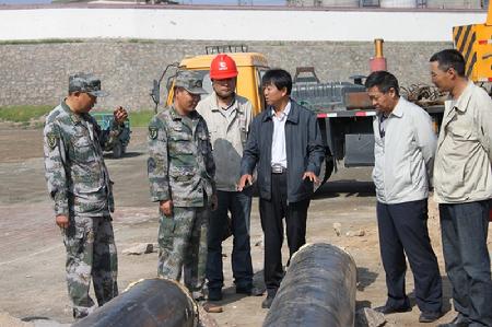 2014年公司領(lǐng)導(dǎo)現(xiàn)場指導(dǎo)為部隊暖氣管道的安裝工作